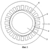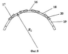 Гибкий магниточувствительный элемент 4, представленный на фиг.7, выполнен в виде ряда плотно расположенных ферромагнитных пластин 16 с двумя внутренними аксиальными отверстиями 17 на противоположных концах, в которых размещены средние участки 15 аксиальных штырей 7. Аксиально смежные пластины, например 18 и 19, установлены со взаимным радиальным смещением так, что у них одно отверстие, например 20, расположено коаксиально. Каждая ферромагнитная пластина 16 выполнена в форме сегмента, радиус внешней поверхности которого R2 равен радиусу внутренней полости статора R1.