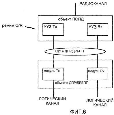 Как описано выше, в одном аспекте структуры отображения объекта ПСПД на объект УРЛ в соответствии со способом и системой мобильной связи настоящего изобретения, так как каждый одноранговый объект ПСПД в передатчике и приемнике имеет модули УУЗ передающей стороны и УУЗ приемной стороны, работающие в режиме O/R, и отображается на один объект УРЛ, который может одновременно активизировать два модуля передачи и приема, отображаемые на различные логические каналы в прозрачном режиме (ПР) или в режиме без подтверждения приема (РБПП), то объект ПСПД может поддерживать двунаправленные услуги реального времени для верхних уровней даже в прозрачном режиме или в режиме без подтверждения приема.