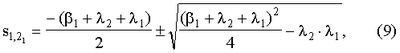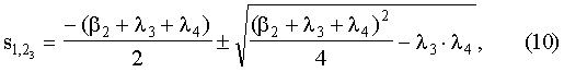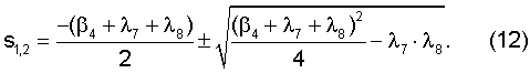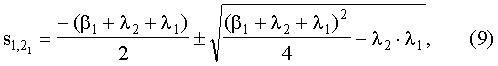 В математических выражениях (1)-(8) , , , – корни квадратных уравнений, которые определяются по формулам (9)-(12):