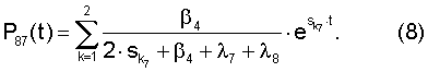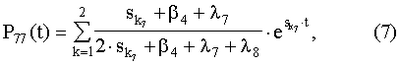 Для начальных состояний 7 и 8 и конечного состояния 7 вероятности переходов в состояние 7 в текущем времени выражаются как