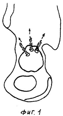 На фиг.1 приведена схема тазобедренного сустава с введенными винтами до установки чашки эндопротеза.