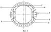Кольцевой корпус клапана 1 имеет три недеформируемых буртика, препятствующие разрастанию паннуса к движущимся элементам протеза. Верхний горизонтальный буртик 6 имеет по всей окружности отверстия 7 для проведения шовного материала и выполняет функцию не только ограничителя нарастаний, но также служит для фиксации клапана. Нижний горизонтальный буртик 8 также препятствует нарушению запирательной функции возможным разрастанием ткани. Верхний вертикальный буртик 9 окаймляет внутренний радиус корпуса клапана. Выступающие дужки создают еще один ограничительный барьер для паннусных разрастаний.