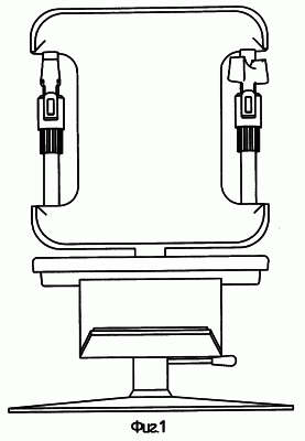 Устройство изобретения приведено на чертежах. На фиг.1 приведен вид устройства спереди, на фиг.2 – вид устройства сбоку.