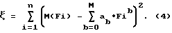 Аналитический подход заключается в получении точных аналитических выражений расчета каждого параметра. Пусть, например, регрессионная функция представляет собой полином:![]() где x – аргумент полинома, ab – коэффициенты (параметры) полинома, М – порядок полинома. Рассмотрим определение параметров регрессионной функции по методу наименьших квадратов, при котором параметры регрессионной функции выбирают таким образом, чтобы сумма квадратов разности обобщенных оценок корреляции и значений регрессионной функции в соответствующие моменты времени была минимальной. Пусть M(Fi) – i-я обобщенная оценка корреляции, a Fi – ее координата на частотной оси. Тогда необходимо определить параметры регрессионного полинома, при которых выполняется условие минимума выражения: ![]() Для нахождения параметров регрессионной функции, минимизирующих выражение (4), нужно вычислить частные производные выражения (4) по каждому параметру и приравнять их к нулю. Дифференцирование выражения (4) приводит к системе линейных уравнений, решения которых легко определяются аналитически. Выражение (4) для общего вида регрессионной функции имеет вид: ![]() где i – i-й параметр регрессионной функции.