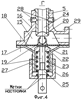 Клапан расхода 15 (см. фиг..4) содержит корпус, состоящий из верхней части 16 и нижней части 17 с хвостовиком, имеющим наружную резьбу и сквозное отверстие; между частями 16 и 17 корпуса клапана 15 зажата эластичная мембрана 18 с отверстием в центре. Резьбовая ось 19 имеет утолщенную головку в виде полой втулки, в которую завальцован сферический клапан 20, и резьбовую хвостовую часть, проходящую через отверстие мембраны 18. Сферический клапан 20 поджат пружиной 23 через распорную втулку 22, шайбу 21, эластичную мембрану 18 и резьбовую ось 19 к посадочному месту оси 5 на входе в канал 24. На резьбовую ось 19 одета центрирующая втулка 25, определяющая положение сферического клапана 20 по отверстию в резьбовой гайке 26, навернутой на резьбу хвостовика нижней части 17 корпуса клапана 15 и поджимающей пружину 23. Положение гайки 26 на нижней части 17 корпуса клапана 15 фиксируется контровочной гайкой 27. Клапан расхода 15 к оси 5 крепится верхней частью 16 корпуса с помощью установочных винтов 28.