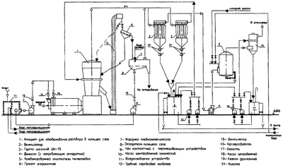 7; 9 – бак с мешалкой и паровой рубашкой для растворения циклонной пыли и подогрева рассола;