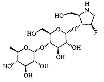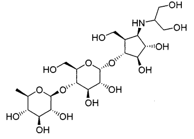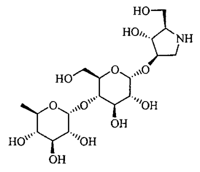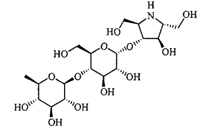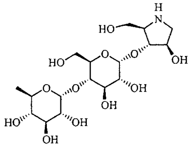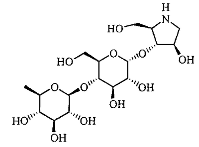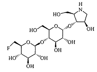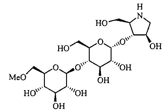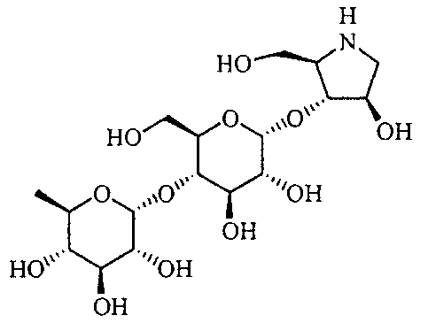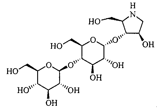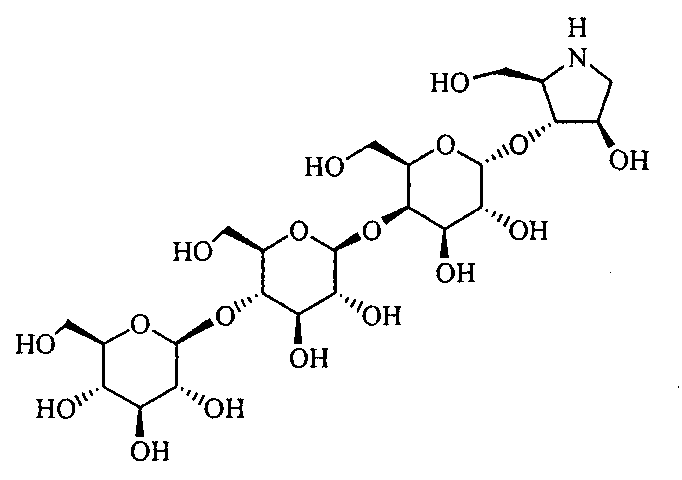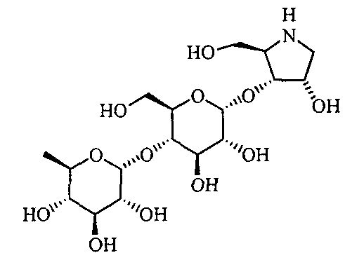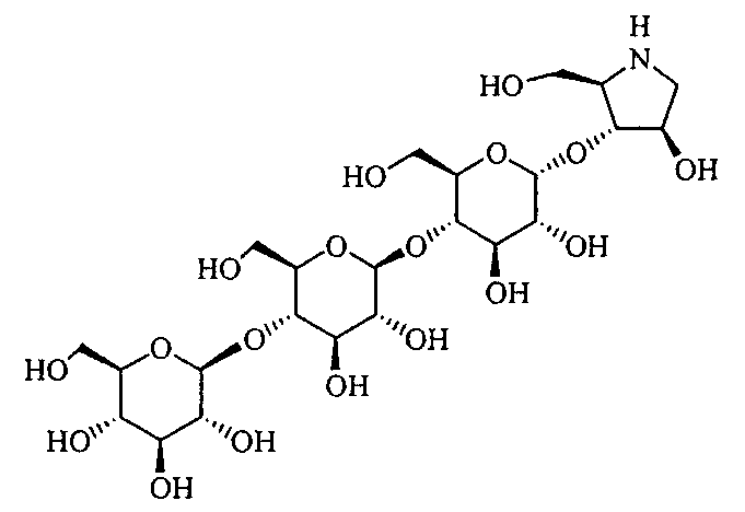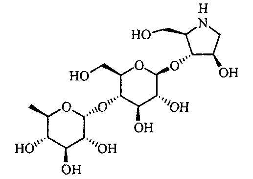 Порошки каждого из перечисленных выше ингредиентов хорошо смешивали, смачивали в очищенной воде и гранулировали с использованием гранулятора корзинного типа с последующей сушкой для получения гранул. Промышленная применимость Соединения по настоящему изобретению в форме нового производного олигосахаридов, его фармакологически приемлемых солей и его фармакологически приемлемых сложных эфиров демонстрируют превосходное ингибирующее действие в отношении