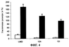 Стабилизирующее действие модифицированного неогликолипидом LMD, было продемонстрировано путем включения соединения 12h или 12i в концентрации 7,5 мол.%. Как известно, липидные слои композиций, основой которых являются липосомы, агрегируют после обработки солью или сывороткой. Это явление можно оценивать путем измерения увеличения среднего размера частиц после фиксированного промежутка времени; любая стабилизация частиц LMD должна проявляться в снижении этого параметра. Он был выбран для оценки размера липоплексов с помощью фотонно-корреляционной спектроскопии (ФКС) после 30-минутной экспозиции при 37°С в среде OptiMem или OptiMem + 10% ФТС, что имитирует стандартные условия in vitro. С помощью ФКС оказалось невозможно анализировать воздействие более высоких концентраций сыворотки, эти условия оказались слишком экстремальными для того, чтобы позволять осуществлять значимые измерения. На фиг.4 показано увеличение размера этих липоплексов (в %).