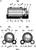 Количество стержней 12 в корпусе 2 может быть различным, но должно быть четным, так как они подключены к двум токосъемникам. На фиг.2 в качестве примера изображено 8 стержней, последовательно пронумерованных от 12.1 до 12.8. Нумерация выполнена для того, чтобы показать, что в предлагаемом устройстве стержни 12 через один герметично подключены соответственно к кольцевым токосъемникам 7.1 (фиг.2, б) и 7.2 (фиг.2, в). Токосъемники 7 предназначены для подачи, в соответствии с предлагаемым способом, электрического напряжения на присадку и могут иметь различную конструкцию. На фиг.1 и фиг.2 показана удобная при эксплуатации реализация, в соответствии с которой токосъемники 7 расположены на наружной боковой поверхности корпуса 2 и выполнены, например, из бронзы.