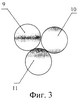 На фиг.3 схематично представлен продольный разрез одиночного отрезка волокна 7 комбинированного люминесцентного экрана-преобразователя 5, где 9, 10, 11 – сечение отрезков волокон, сцинтиллирующих в различных участках оптического спектра при параллельном соединении отрезков волокон.