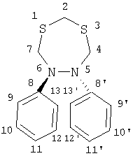(56) (продолжение): CLASS=”b560m”гетероциклизация гидразина, сероводорода и формальдегида. Изв. РАН. Сер. “Химия”. 2004, №8, с.1652-1656. Р.Г.Костяновский и др. «Асимметричный азот. Сообщение 78. Пространственно-затрудненная инверсия атомов азота в циклических гидразинах: N,N’-диалкил-1,3,4-оксадиазолидины; 1,3,4-тиадиазолидин; 4,5-бензо-1,2,3,6-тетрагидропиридазин», Известия академии наук, Серия Хим., 1997, №7, стр.1346-1354.