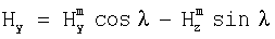 При измерении магнитного азимута из показаний магнитометров вычитаются значения определенных выше магнитных помех и таким образом находятся проекции на измерительные оси феррозонда напряженности магнитного поля Земли ( , , ). Затем путем преобразования координат вычисляются проекции напряженности магнитного поля Земли на оси инклинометра OXYZ, связанные с его корпусом:
