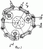 Предлагаемый роторный двигатель внутреннего сгорания поясняется чертежами, на фиг.1 представлен вид двигателя сверху, на фиг.2 – разрез А-А фиг.1.
