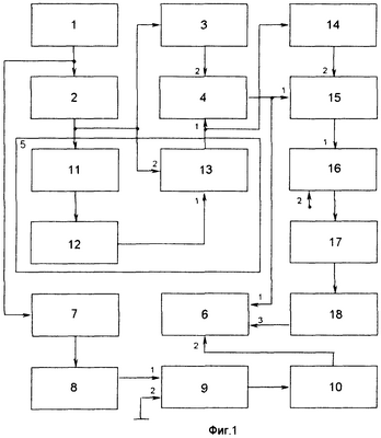 Выход амплитудного селектора 15, который может быть выполнен по схеме, приведенной в [4, с.374 и 5, с.87], подключен к первому входу временного селектора 16, второй вход которого соединен с входной шиной. Временной селектор 16 открыт в течение времени, равного длительности прямоугольного импульса единичной амплитуды, вырабатываемого амплитудным селектором 15, которое прямо пропорционально полосе пропускания амплитудно-частотной характеристике измеряемого объекта 2 и обратно пропорционально скорости изменения частоты генератора 1. На второй вход временного селектора 16, который может быть выполнен по схеме, приведенной в [5], поступают импульсы, следующие с частотой Fсч. Выход временного селектора 16 подключен к входу декадного счетчика 17, который осуществляет счет поступающих импульсов Nx, т.е. преобразует унитарный код в двоично-десятичный. Выход декадного счетчика 17 подключен к входу второго дешифратора 18, который осуществляет преобразование двоично-десятичного кода, в котором представлена измерительная информация на выходе декадного счетчика 17 в сигналы кода используемого цифрового индикатора 6, который может быть выполнен по схеме, приведенной [3]. Декадный счетчик 17 и второй дешифратор 18 могут быть выполнены соответственно по схемам, приведенным в [3 и 6, с.42-43].