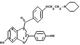 (57) Реферат: Предложено новое средство для ингибирования эндометриоза. В качестве такого средства предложен антиэстроген – соединение, имеющее формулу ![]() где R1 и R3 независимо – атом водорода, метил, ![]() где Ar – необязательно замещенный фенил; R2 выбирают из группы, состоящей из пирролидино- и пиперидино, или фармацевтически приемлемая соль. Изобретение расширяет арсенал средств указанного назначения. 3 з.п. ф-лы, 2 ил. Эндометриозом называют состояние острой дисменореи, которая сопровождается острой болью, кровотечением во внутриматочные массы или в брюшную полость и часто приводит к бесплодию. Причиной появления симптомов этого состояния является гетеротопический рост эндометриоидной ткани, который неадекватно отвечает нормальному гормональному контролю и происходит в неподходящих тканях. Вследствие неправильного места эндометриоидного роста, ткани, видимо, начинают посылать сигналы, напоминающие отклик на воспаление, что вызывает макрофаговую инфильтрацию и целый каскад событий, приводящих к инициированию болезненной реакции. Точная этиология этого заболевания еще не вполне ясна и его лечение посредством гормональной терапии весьма разнообразно, плохо охарактеризовано и, как отмечается, сопровождается нежелательными и возможно опасными побочными эффектами. Один из способов этого заболевания состоит в использовании небольших доз эстрогена для подавления роста эндометриодной ткани за счет обратного негативного воздействия на централизованное выделение гонадотропина, вызывающего последующее воспроизводство эстрогена яичниками; однако иногда для осуществления контроля за симптомами приходится использовать эстроген непрерывно. Такое применение эстрогена часто приводит к нежелательным побочным эффектам и даже сопряжено с риском развития рака эндометриоидных тканей. Другой способ лечения заключается в продолжительном назначении прогестинов, которые вызывают аменорею и могут привести к регрессии роста эндометриоидных тканей за счет подавления выделения эстрогена яичниками. Применение хронической терапии с использованием прогестина часто сопровождается нежелательным побочным влиянием прогестинов на центральную нервную систему и часто приводит к бесплодию вследствие нарушения функции яичников. Третий способ лечения состоит в назначении слабых андрогенов, которые эффективны для контроля эндометриоза; однако ни обладают сильным маскулинизующим действием. Некоторые случаи подобного лечения сопровождались при длительной терапии некоторой потерей костной массы. Таким образом, желательно находить новые способы лечения эндометриоза. Настоящее изобретение обеспечивает подавление эндометриоза путем назначения человеку, который нуждается в подобном лечении, эффективного количества соединения формулы /I/: ![]() где R1 и R2 независимо – атом водорода, метил, ![]() где Ar – необязательно замещенный фенил; R2 выбирают из группы, включающей пирролидиногруппу и пиперидиногруппу; и его фармацевтически приемлемой соли, и его сольвата. Настоящее изобретение основано на обнаружении того факта, что выбранная группа 2-фенил-3-ароилбензотиофенов /бензотиофенов/, а именно соединений по формуле /I/, полезна для ингибирования эндометриоза. Способы лечения, основанные на настоящем изобретении, осуществляют на практ