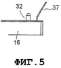 Длина захватывающего элемента устройства для перемещения контейнера уменьшена с 35 футов до 30 футов, так что штыри 31 на концевых частях 12 вставлены через концевые отверстия верхних угловых приспособлений 21 нижнего контейнера 20. Если нижний контейнер 20 недостаточно точно выровнен с верхним контейнером 20, балка 17 движется в боковом направлении, и направляющие элементы 37 (фиг.5), опирающиеся на боковые поверхности угловых приспособлений 21, выравнивают положение штырей 31 относительно отверстий.