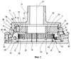 Винтовые пружины пружинного блока 75 опираются с одной стороны на дно выемки 73 и с другой стороны на нижнюю сторону основания 13, так что фрикционное кольцо 39 и вместе с ним зажимное кольцо 5 прижимается вниз до тех пор, пока нижняя сторона зажимного кольца 5 не прижмется к верхней стороне запорного кольца 55.