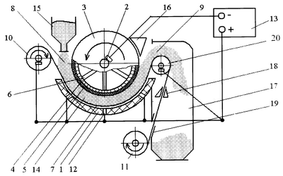 11 – сматывающий барабан анодной ленты;