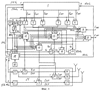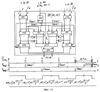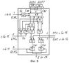 Блоки 1881-400 регистров идентичны /фиг.19, 20/, каждый включает первый 189, второй 190, третий 191, четвертый 192 ключи, первый 193, второй 194, третий 195, четвертый 196 распределители импульсов, первые восемь регистров 1971-8, первый счетчик 198 импульсов и первый дешифратор 199, вторые восемь регистров 2001-8, второй счетчик 201 импульсов и второй дешифратор 202 и триггер 203. Первым и вторым информационными входами блока 188 являются объединенные поразрядно первые /информационные/ входы разрядов первых восьми регистров 1971-8 и объединенные поразрядно первые /информационные/ входы разрядов вторых восьми регистров 2001-8. Выходы разрядов в каждом регистре объединены и являются 1-8 выходами блока 188 регистров. Управляющих входов четыре: первый – объединенные первые управляющие входы первого 189 и третьего 191 ключей, подключенные к первому выходу триггера 185 в блоке 92, вторым – объединенные сигнальные входы второго 190 и четвертого 192 ключей, подключенные к выходу 1 блока 140 /6 МГц/, третьим – объединенные сигнальные входы ключей 189, 191, подключенные к выходу 7 блока 140 /24 МГц/, четвертым – объединенные первый управляющий вход ключа 190, второй управляющий вход ключа 192 и второй выход триггера 203, подключенные через диод к первому управляющему выходу блока 188400 регистров.
