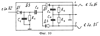 После включения канала передачи в блоке 80 напряжение с соответствующего выхода блока 80 управления определяет выход двух частот с синтезатора 140 частот на третьи входы блоков 81, 93 и блока 105 /первая несущая частота выход 5, вторая – выход 6 в блоке 140/. Двухполярные амплитудные детекторы 83, 95, 107 выполнены по схеме на фиг.10. Диод Д1 выделяет положительную огибающую модулирующего сигнала, диод Д2 уже из модулирующей выделяет огибающую положительных полусинусоид /символы единиц в кодах нечетных отсчетов/, диод Д3 из модулирующей выделяет огибающие отрицательных полусинусоид /символы единиц в кодах четных отсчетов/. С первого выхода продетектированные положительные полусинусоиды частотой 48 МГц поступают на вход первого формирователя 84 /96, 108/ импульсов, со второго выхода продетектированные отрицательные полусинусоиды поступают на вход второго формирователя 85 /97, 109/ импульсов. Формирователи импульсов выполнены по схеме несимметричного триггера с эмиттерной связью [10, c.209], формирующего прямоугольные импульсы из гармонически изменяющихся сигналов. Импульсы с формирователей имеют одну полярность и длительность, равную длительности импульсов в кодах на передающей стороне. Единицы в кодах представляются наличием импульса, нули их отсутствием. После включения питания в приемной стороне ключи все в закрытом состоянии, порядок работы определяется сигналами управления с канала формирования управляющих сигналов с блоков 139, 140, 143 и 144. Задающая роль принадлежит блоку 139 выделения строчных синхроимпульсов. Условием появления ССИ с блока 139 является одновременный приход в него с трех формирователей 84, 96, 108 кодов из восьми единиц. Во всех кодах, кроме 599 отсчета, будут присутствовать один и более нулей, тем более в трех кодах одновременно. По каждому нулю в коде элементы НЕ /фиг.14/ будут обнулять счетчики в блоке 139. С приходом трех кодов 11111111 блок 139 выдает на выходе импульс, являющийся ССИ, частота которых 20 кГц /частота строк на передающей стороне/. ССИ открывает ключ 141, поступает на вход блока 144 выделения синхроимпульсов стерепар и на первый вход синтезатора 140 частот. По импульсу ССИ выполняется синхронизация частоты в синтезаторе 140 частот, собственная стабильность частоты которого 10-6. Подстройка под частоту и фазу задающего генератора 10 передающей стороны производится по переднему фронту ССИ с блока 139. Синтезатор 140 частот выдает: с первого выхода импульсы 6 МГц, со второго выхода тактовые импульсы 48 МГц, с третьего – импульсы 60 кГц для выдачи кодов звука в каналах воспроизведения звука, с четвертого – импульсы 12 МГц на управляющие входы блоков 88, 112, 100 обработки кодов, с пятого и шестого – синусоидальные колебания двух требуемых несущих частот соответственно принимаемого канала передач на третьи входы блоков 81, 93, 105, с седьмого выхода импульсы 24 МГц в первые блоки 89, 113, 101 задержек, на управляющие входы сумматоров 90, 114, 102 и на третьи управляющие входы накопителей 92, 116, 104 кодов, с восьмого – импульсы 50 Гц в блоки 89, 113, 101 задержек и на четвертые управляющие входы накопителей 92, 116, 104 кодов. Код нечетного отсчета видеосигнала ЕR с выхода формирователя 84 импульсов поступает в последовательном виде в первый регистр 86, заполняя его разряды код становится параллельным. Код четного отсчета видеосигнала ЕR с выхода формирователя 85 импульсов пост