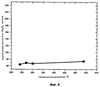 Фиг.5 представляет график, показывающий влияние температуры кальцинирования на площадь BET поверхности кобальтового катализатора настоящего изобретения, приготовленного без промотора.