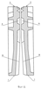 – участок III – нерабочая донная поверхность секторов с выступающими краями сдвоенных ножей 3, укороченных сдвоенных ножей 4, малых сдвоенных ножей 5, центрального осевого ножа 17, малого V-образного ножа 18 до окружной кромки 8 входа в зону «А».