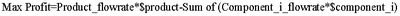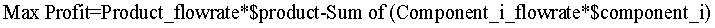 Max Profit=Product_flowrate · $product – Sum of (Component_i_flowrate · $component_i),