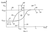 Наиболее существенной частью способа автоматической on-line калибровки является стадия (С). Эта и последующие стадии также проиллюстрированы на Фигуре 4. На этих стадиях осуществляется расчет минимально и максимально возможного прогноза за время реального и проверочного измерения качества газойля. Стадию (С) осуществляют с применением двух динамических передаточных функций (так называемая неопределенная динамика) с целью прогноза качества (11) газойля (режим реального времени), в результате чего получают два промежуточных сигнала. Динамические передаточные функции являются хорошо известным инструментом для специалиста в данной области, и они описаны, например, в Linear Systems by Keilath, Prentice-Hall, Information & System sciences series, 1980. На стадии (D) такие промежуточные сигналы (20, 21) сохраняют в истории, в виде временной функции. Это приводит к возникновению области (неопределенности) (22), в которой должна располагаться действительная технологическая характеристика и которая становится очень узкой при достижении стационарного режима (23, 24). Возможно также, что область неопределенности (22), в случае нестационарного режима, превращается в линию, соответствующую случаю, когда независимые динамические передаточные функции становятся идентичными (такая ситуация на Фигуре 4 не показана). Так называемый минимально и максимально возможный прогноз получают путем расчета из истории значений абсолютного минимума (27) и максимума (28) двух промежуточных сигналов (20, 21) за период времени, соответствующий минимальному (25) и максимальному (26) значением мертвого времени. Мертвое время представляет собой функцию действительного положения функции оценки качества газойля относительно места измерения качества газойля, времени измерения качества реального газойля и других рабочих условий, например объемной скорости и удерживания жидкости. Мертвое время может быть легко определено специалистом в данной области техники. Из введенных данных определяют максимальное (26) и минимальное (25) мертвое время, представляющее собой временной период истории процесса, на стадии (F) которого реальное и подтвержденное измерение качества газойля (29 29′) сравнивают с прогностической областью значений качества газойля (22) и минимально (27) и максимально (28) возможными значениями качества газойля.