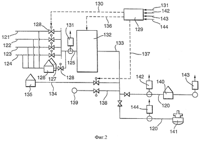 В том случае, когда качество продукта со стадии (с) должно быть постоянно близким качеству конечного газойля, как это имеет место в случае погрузки на судно (141), описанный выше RQE (143) не используют. В этом случае качество продукта, погруженного на судно, оценивают с использованием RQE (144).