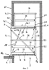 Поперечная балка 16, а также перекладины 29-31 и 34-36 также могут быть выполнены с возможностью изменения их длины. Это позволяет, например, увеличивать рабочую зону площадки 2 или подгонять площадку 2 под размеры шахты, которая на чертеже не показана.