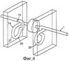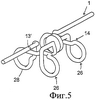 Фиг.5 показывает еще одну конструкцию упора-разделителя 14, который в данном случае образован частями 26 стержня 3. Эти части 26 выполнены в виде двух согнутых петель 28, предназначенных для удержания щитов 8, 9 со стороны их поверхности, обращенной к формовочной полости. В этом случае стержень 3 имеет направляющие 13′, по существу эквивалентные тем, что показаны на фиг.4. Показанные на фиг.4 и 5 части 26 могут быть выполнены не в виде петель 27, 28, а в виде незамкнутых колец, удерживающих щиты 8 и 9. Упоры-разделители 14 могут быть взаимно расположены вдоль длины опалубочной стяжки, образуя угол, например, 90 градусов.