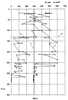 На фиг.1 и 2 приведены результаты исследования разреза многолетнемерзлых пород на льдистость, просадочность, кавернозность для определения по геокрилогическим условиям разреза критерия аварийной опасности (КАО). При этом при КАО=0-0,10 отмечается неопасный уровень, при 0,10-0,30 – уровень допустимой опасности, при 0,30-0,50 – умеренной опасности, при 0,50-0,70 – повышенной, а при 0,70-1,10 – особо опасный и при более 1,10 – аварийный для конструкции скважины в выявленных геокриологических условиях глубинного разреза многолетнемерзлых пород.