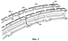 На фигуре 1 изображен в разрезе фрагмент статора 1 газовой турбины и некоторые его элементы, изображенные также на фигуре 2. Статор 1 включает корпус 2, охватывающий с внешней стороны кольца 3, расположенные напротив подвижных лопаток 5 ротора 6 на одном с ними уровне внутри канала 7, по которому проходит газовый поток, и при этом кольца 3 чередуются с другими кольцами 8, поддерживающими неподвижные лопатки 9, находящиеся в канале 7. Газовые турбины включают в свой состав несколько последовательно расположенных колец 3 и 8, но только по одному кольцу каждого вида показано на фрагменте, изображенном на фигурах 1 и 2, причем настоящее изобретение относится в данном случае только лишь к кольцу 3.