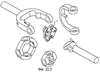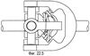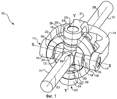Регулирующая вилка 21 шарнирно соединена с наружной вилкой 16 и с внутренней вилкой 22 посредством валов 23 в цапфах 24 регулирующей вилки и подшипников (не видны) в цапфах 25 наружной вилки и цапфах 26 внутренней вилки. Ось Y-Y, определяемая регулирующей вилкой 21 и цапфами наружной вилки 16 и внутренней вилки 22, является главной осью муфты 10.