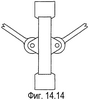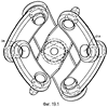 Согласно еще одному варианту раскрывают рычажный механизм, который представляет собой обладающую новизной реализацию принципов системы внутренней и наружной вилки или системы универсального шарнира типа, обычно используемого в двойных карданных шарнирах. Это осуществление имеет форму вилочного механизма, используемого в четырнадцатом осуществлении.