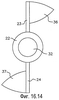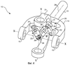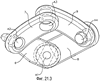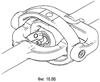 Как видно из Фиг.3: внутренняя вилка 22 и наружная вилка 16 для наглядности не изображены, чтобы показать первый ножничный механизм 30, состоящий из первого ножничного звена 31 и первых ножничных кулис 32 и 33. На Фиг.3 также показаны: продолжение 34 входного вала и регулирующий штифт 35 входного вала. Ось регулирующего штифта 35 входного вала пересекает центр 29 муфты и расположена в плоскости, переделяемой осью 27 входного вала и осью 36 выступа входного вала.