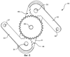 44. Муфта по п.43, в которой сферические треугольники, образованные шарнирными центрами центрального зубчатого колеса и первым и вторым концами первого и второго рычажных звеньев, равны между собой.