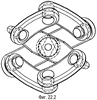 57. Муфта по п.56, в которой вторая пара цапф вилки выходного конца определяет ось вращения под прямыми углами к оси первой пары цапф вилки выходного конца; причем оси первой и второй пар цапф вилки выходного конца пересекаются в выходном центре муфты.