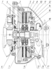 Работа муфты сцепления происходит следующим образом. При переводе муфты включения 18, например, вправо штанги 17 занимают вертикальное положение, а штанги 16 увеличивают угол своего наклона, вследствие этого рычаги 14 и 15, опираясь на опорный диск 13, перемещают кольца 11 и 12 с пружинами 9 и 10 влево. При этом пружина 10, сжимаясь, прижимает через поводковое кольцо 8 нажимной диск 3 и ведомый диск 4 к маховику 1. Пружина 9 в этом положении создает минимальную осевую силу, необходимую лишь для поддержания беззазорного контакта звеньев нажимного механизма. При перемещении муфты включения 18 влево происходит процесс, диаметрально симметричный описанному, при котором вращающий момент двигателя передается на ведомый диск 5.