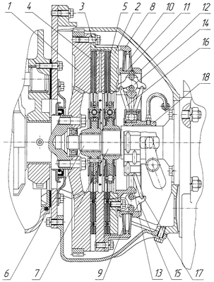 На чертеже представлено продольное сечение предлагаемой муфты сцепления.