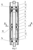 Продольные неподвижные упоры расположены равномерно на внутренней цилиндрической поверхности корпуса.