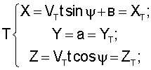 Согласно фиг.3 расположение ракеты (М) и цели (Т) в некоторый момент времени t будет: