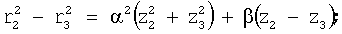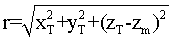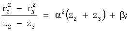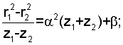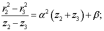 где А, В, С – постоянные коэффициенты, r1 r2, r3 – текущие расстояния, фиксируемые при проходе целью трех заданных расстояний Z1, Z2, Z3.