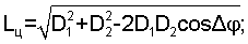 где D1, D2 – угловое положение начальной и соответственно конечной точки на теле цели;  = н– к – угловой размер цели.