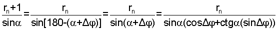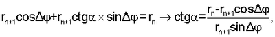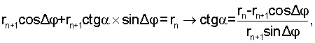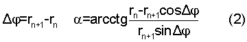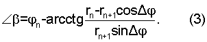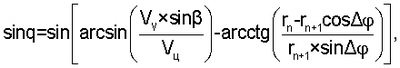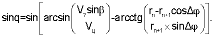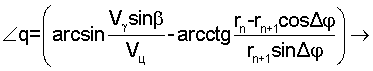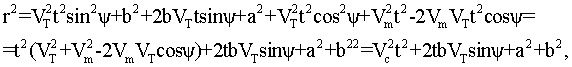 где Vr, Vц – модули скорости ракеты и цели, – угол между составляющими вектора цели,  – угловой размер между двумя фиксированными точками относительно ракеты, rn, rn+1 – текущие значения дальности до цели.