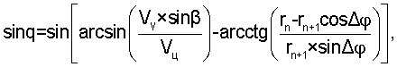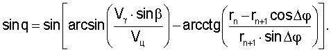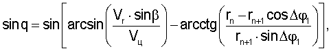 где Vr, Vц – модули вектора скорости ракеты и цели, – угол между составляющими вектора цели,  1 – угловой размер между двумя фиксированными точками относительно ракеты, rn, rn+1 текущие значения дальности до цели.