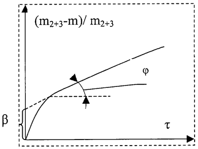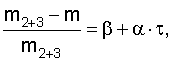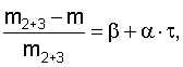 где m2+3 – начальная масса смеси компонент раствора, оставшихся в жидкой или твердой фазе; m – масса смеси компонент раствора, оставшихся в жидкой или твердой фазе в момент времени ; – относительная скорость перехода в паровую фазу, определяемая как тангенс угла наклона прямолинейного участка к оси ,