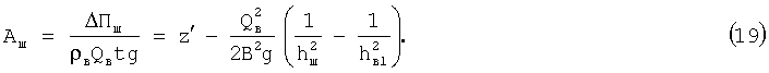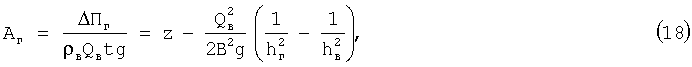Разделив выражения (12) и (17) на силу тяжести протекающей воды mшg=mгg= вQвtg, получим формулы для определения изменения удельных энергий потоков: