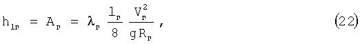 где г – коэффициент гидравлического сопротивления на гладкой поверхности трения; lг – длина гладкой поверхности трения, м; Vг – скорость потока по гладкой поверхности трения, м/с; Rг – гидравлический радиус, м. В формуле (22) изменение удельной энергии потока жидкости Аг имеет размерность, выраженную в единицах длины, и равно по величине потерям напора по длине hlг.