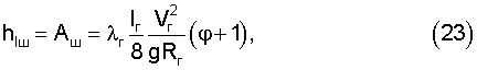 где hlш – потери напора по длине на шероховатой поверхности трения, м.